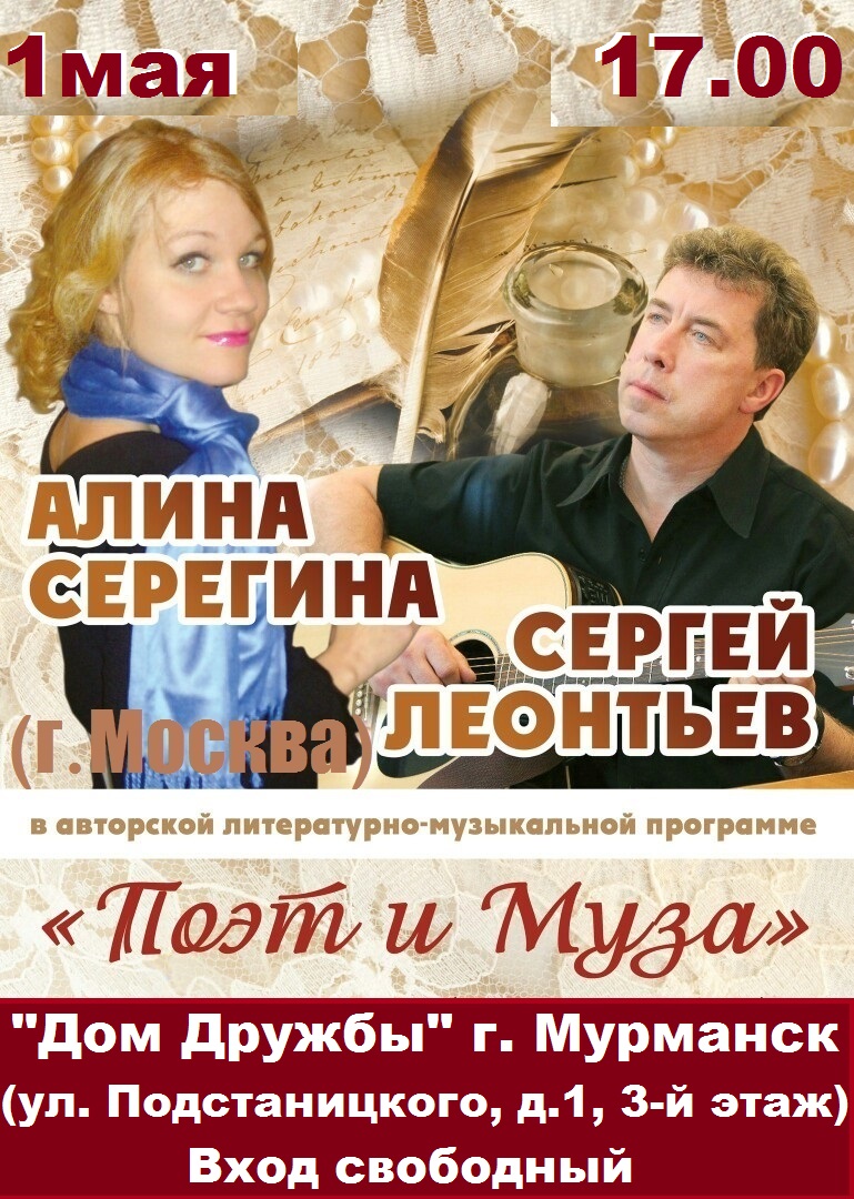 1 мая в Доме Дружбы состоится встреча с московскими поэтами Алёной Серёгиной и Сергеем Леонтьевым.